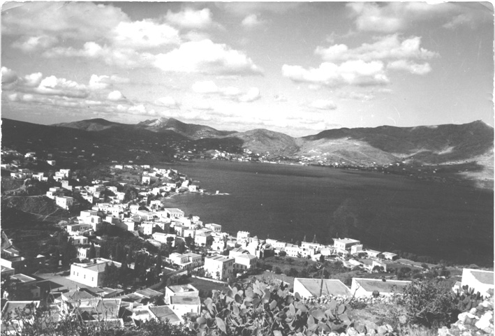 Vi står och tittar ut över Alindabukten från Kastroberget och över Agia Marina mot Alinda.